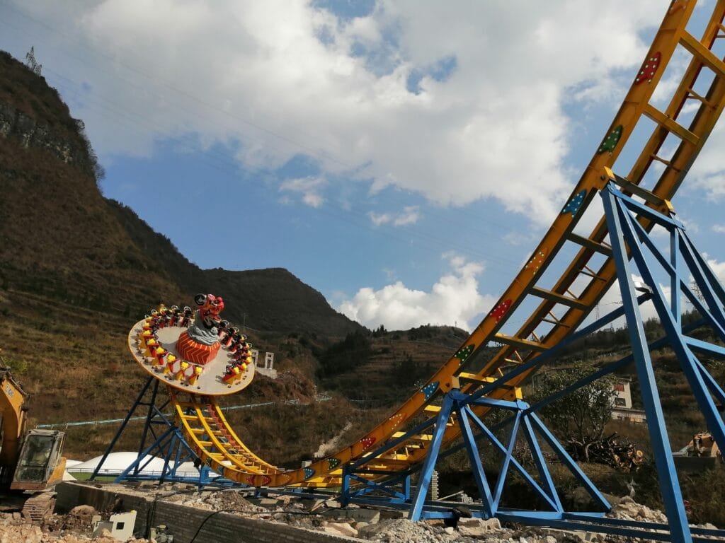 The disco turntable is a large-scale children’s amusement equipment. Its biggest feature is a large round disc. Unlike the turntable of the spinning knight, the disco turntable is a circle where tourists sit together to experience the excitement. The disco turntable is a very good parent-child amusement equipment. It does not have a U-shaped track like the spinning knight, and is suitable for young children and family activities.